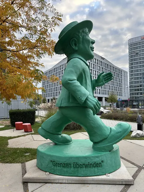 „Grenzen überwinden“ - so ist das übergroße Ampelmännchen betitelt, das unweit des Frankfurter Flughafens als Überbleibsel der Feierlichkeiten zu 25 Jahren Deutsche Einheit etwas verloren zwischen Hotelgebäuden steht. Aber es steht für mich auch ein bisschen für unsere morgen beginnende Leserreise. Als Pilger der Hoffnung werden wir, 27 Leserinnen und Leser plus Reisebegleiter Bodo Ramelow und seine italienische Frau im Heiligen Jahr in die Ewige Stadt reisen. So wie einst der Augustinermönch und spätere Reformator Martin Luther. Allerdings nicht auf Schusters Rappen oder mit Pferdegespann.