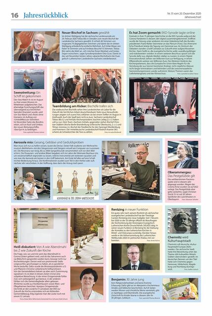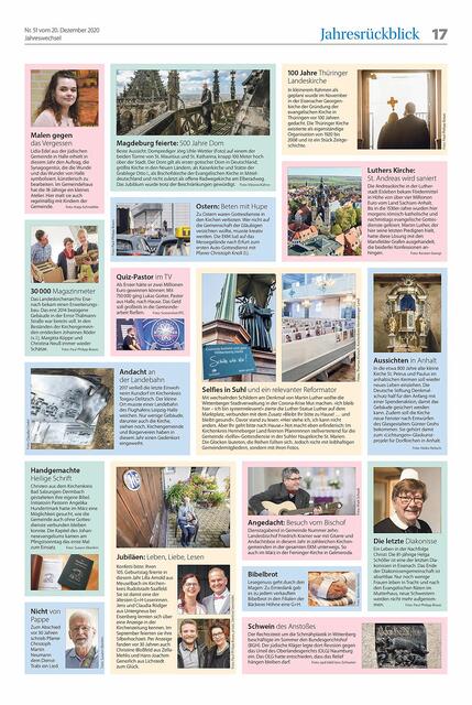 In unserer Weihnachtsausgabe lassen wir 2020 noch einmal auf einer Doppelseite Revue passieren. Außerdem erwartet Sie die Weihnachtsmeditation von Anhalts Kirchenpräsident Joachim Liebig, ein großes Weihnachtsrätsel mit attraktiven Preisen, eine Weihnachtserzählung, Fernseh- und Online-Tipps für die Christmette im Wohnzimmer sowie ein Ausblick ins neue Jahr nebst Auslegung zur Jahreslosung von Landesbischof Friedrich Kramer.