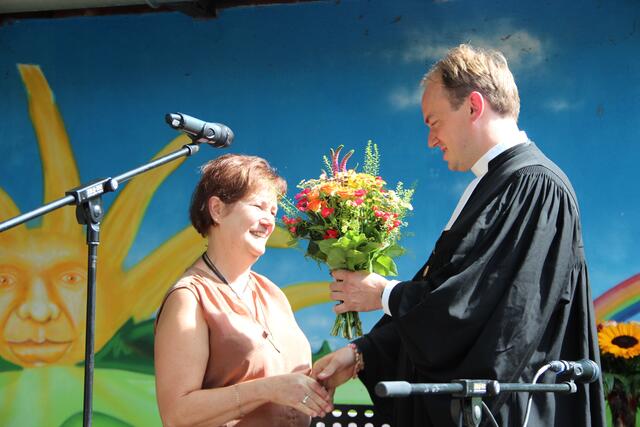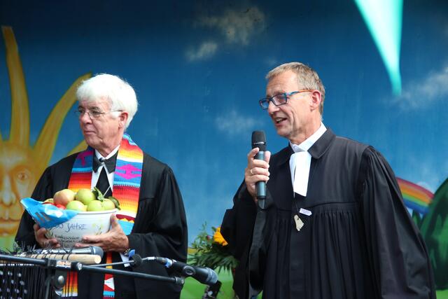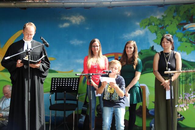 Das Fest begann mit einem Gottesdienst, anlässlich 30 Jahre Evangelischer Kindergarten, der vom Posaunenchor begleitet wurde. Superintendent Michael Wegner, Pfarrer Christian Weigel und Ramón Seliger, Rektor und Geschäftsführer der Diakoniestiftung Weimar Bad Lobenstein, hielten den Gottesdienst mit abwechselnden Aufgaben. Dankbarkeit und Freude über dieses schöne Fest, den großen Kindergarten mit so verschiedenen Jungen und Mädchen und einer Leiterin, Angela Oswald, die das Haus und ihre Team mit viel Engagement seit Jahrzehnten führt, bestimmten die erste Stunde. Es wurde gesungen und gelacht, es gab Geschenke, Worte der Dankbarkeit und eine gemeinsame Fürbitte.