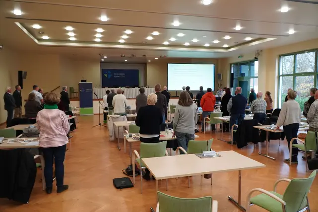 Im Bürgerhaus Gatersleben eröffnete Präses Erik Hannen die Tagung und verlas ein Grußwort von Regionalbischöfin Bettina Schlauraff. In ihrem Brief vergleicht sie die Legislaturperiode der V. Kreissynode mit dem Jahreszyklus ihres Quittenbaums – von den ersten Blättern bis zur reichen Ernte – und bedankt sich für die Arbeit der Synodalen, die nun ebenso reiche Früchte trägt.