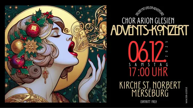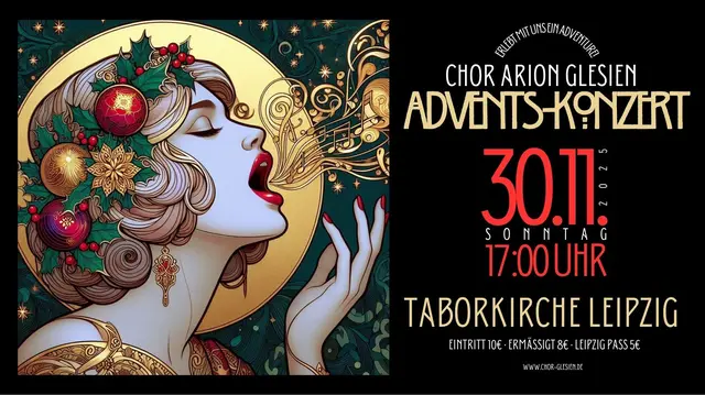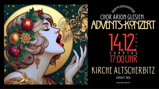 Der Chor Arion lädt ein zu einem besonderen Adventskonzert voller Wärme, Klang und Vorfreude. „Ein Leuchten im Advent – das Adventure geht weiter“, eine musikalische Reise durch besinnliche, berührende und mitreißende Werke, traditionelle Advents- und Weihnachtslieder in alten und neuen Chorarrangements – mal leise und besinnlich, mal kraftvoll und mitreißend. Ein Konzert, das Licht in die dunkle Jahreszeit bringt und den Advent auf besondere Weise erlebbar macht. Lassen Sie sich verzaubern und...