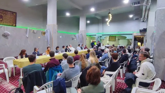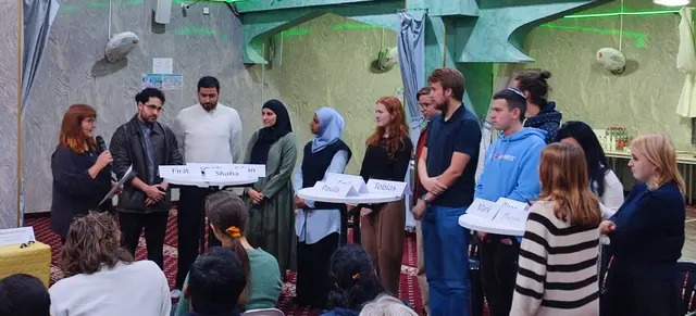 Religion im Alltag – wie lebe ich meinen Glauben? Unter dieser Überschrift gab es in Magdeburg eine Veranstaltung mit Gemeindegliedern aus den jüdischen, aus christlichen und aus zwei muslimischen Gemeinden der Stadt. Der große Gebetsraum im islamischen Gemeindezentrum war sehr gut gefüllt. Zunächst gab es kurze Impulse von jeweils einem Religionsvertreter zu dem Thema. Landesrabbiner Fabian sprach über die Bedeutung des Schabbats als Familienzeit (er ist Vater von 5 Kindern), Pater Clemens von den Prämonstratensern setzte die Überlegungen fort und dachte über die Bedeutung der Sonntagsruhe und das zunehmend individualisierte Gebet in einer säkularen Gesellschaft nach und Mustapha Boutliliss (Islamische Gemeinde) erläuterte die fünf Säulen des Islam. Im Anschluss interviewte Annette Berger von der Evangelischen Erwachsenenbildung ca. 15 Jugendliche aus den drei verschiedenen Religionen zu der Frage, wie sie ihren Glauben im Alltag leben, welche Herausforderungen es mit sich bringt und welchen Halt sie darin finden. Im Anschluss gab es noch einen angeregten Austausch zwischen den weiteren Podiumsmitgliedern und dem Plenum, bevor sich alle an einer reichlich gedeckten Tafel stärken konnten. Dort wurden die Gespräche vor allem auch unter den vielen jungen Leuten lebhaft fortgesetzt. Es war das zweite interreligiöse Gespräch in Magdeburg, aber es war ganz gewiss nicht das letzte Mal.