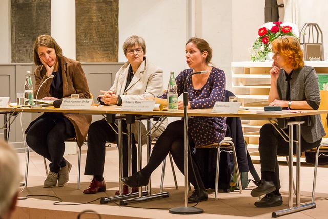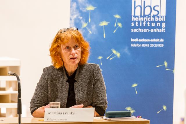 Erzählen ist das Geheimnis der Erinnerung. Und so lud die Moderatorin des Abends, Rebecca Plassa (Heinrich-Böll-Stiftung) ihre Gäste dazu ein zu erzählen, wie sie damals die Situation wahrnahmen, wie es mit den Friedensgebeten und anderen Formen der Friedlichen Revolution war. In Zeitz wirkte wohl noch die Selbstverbrennung von Pastor Brüsewitz nach, so dass die Friedensandachten in der Aue gefeiert wurden. Das Pfarrhaus war eine Art Schutzraum. Und die Kirche bot Freiraum. Denn in den Friedensandachten bestand die Möglichkeit zu sagen, was Menschen empfanden, was sie wünschten: offenes Mikrofon, offener Gedankenaustausch, wie etwa in der Wittenberger Schlosskirche. Eine neue Sprachfähigkeit setzte gerade auch die Kirche frei, indem sie ihre eigene, geprägte Sprache zur Verfügung stellte und Gedanken damit erste Worte gab, die sich weiterentwickelten.