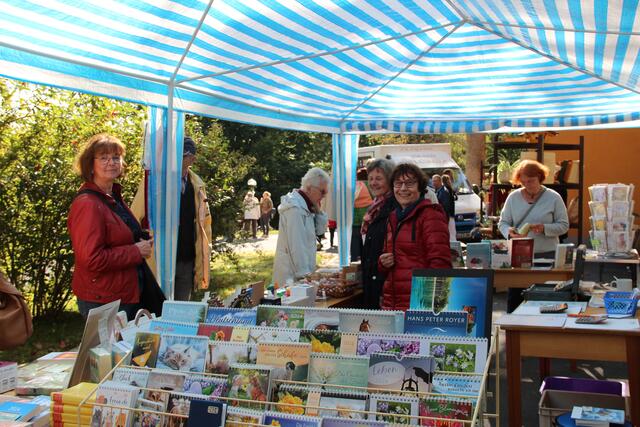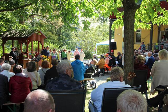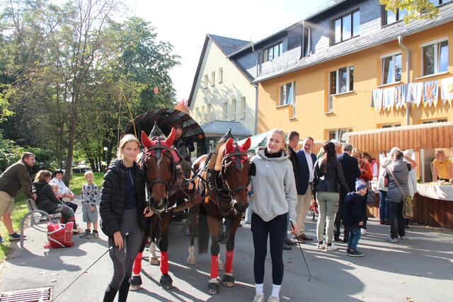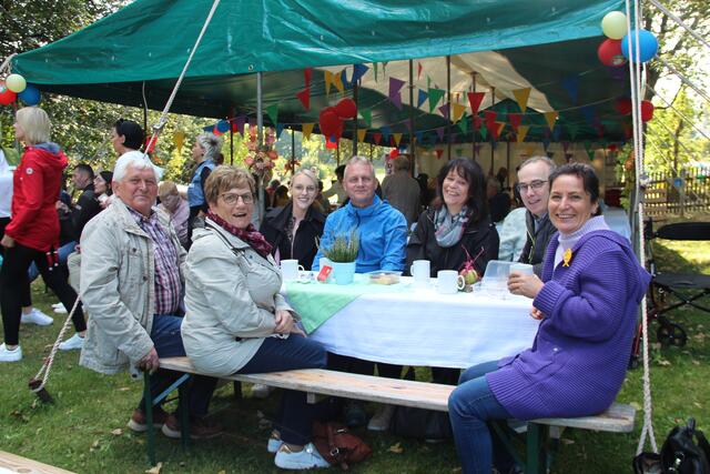 In den Räumen der Tagespflege gab es später Kaffee und Kuchen. Während dort viele Menschen saßen, vergnügten sich andere auf dem Gelände. Das Angebot war groß, an Schönem, was solch ein Fest unvergesslich macht: Kutschfahrten, Glücksrad, Verkaufsstände, Flohmarkt, Blasmusik im Festzelt, Bratwürste, Seifenblasen und viele Begegnungen mit fröhlichen Menschen.