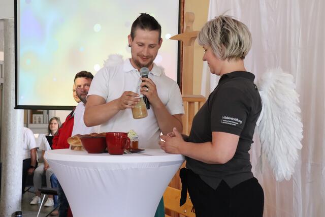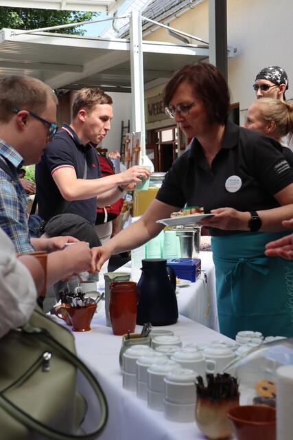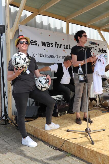 Diese Vielfalt war zum Fest auf dem gesamten Gelände zu erleben. Neben bewährten, liebgewonnen Traditionen und Angeboten, gibt es stets Highlights. Bettina Schmidt, Geschäftsbereichsleiterin Eingliederungshilfen, und ihr Team hatten einiges vorbereitet. In diesem Jahr die Versteigerung von Fußbällen, signiert von den Nationalspielern Thomas Müller und Chris Führich, sowie die Vorstellung der neuen Christo-Bücherbox am Hofladen. Am Illustrationsautomat (ILLUMAT) wurden Wünsche aufgeschrieben und in bunte Bilder verwandelt - ein Besuchermagnet zum Jahresfest ebenso wie der Eisstand aus Holzdorf, der Hofladen und die Töpferei.