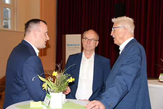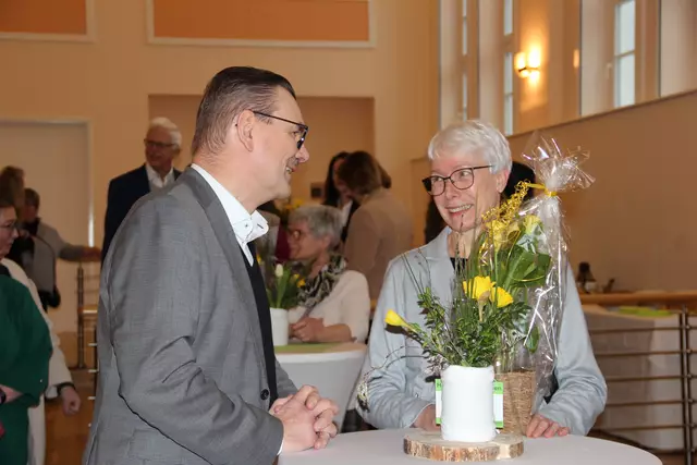 Im Bürgerhaus Ebersdorf hatte ein Team der Verwaltung der Diakoniestiftung einen festlichen Empfang mit Kaffee, Kuchen und Imbiss an festlich gedeckten Tischen vorbereitet. Die Gäste nahmen die Einladung sehr gern an, nutzen die Gelegenheit zu Gratulation und Austausch untereinander.