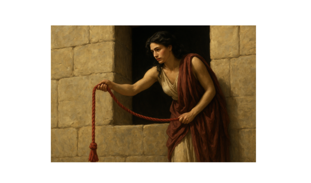 Und nun - zum Schluss kommt Rahab, die Hure, die man heute wahrscheinlich „Sexarbeiterin“ nennen würde, um die eigene Prüderie zu tarnen. Aber die Bibel sagt „Hure“ und meint „Mensch“. Sie wohnt in der Mauer, sie lebt am Rand, sie lügt, sie verrät, und sie rettet dadurch die Welt. Sie hängt ein rotes Seil aus dem Fenster – das rote Seil, das der rote Faden ist, der sich durch die gesamte Weltgeschichte schlängelt, durch alle Predigten, durch alle Irrtümer, durch alle Verzweiflungen. Wer ist diese Rahab? Rahab ist die, die nicht mitmacht. Die, die die GEZ nicht zahlt, die, die sich nicht zwangsimpfen lässt, die, die die falsche Zeitung liest, die falschen Freunde hat, die falsche Partei wählt, die, über die man in der Stadt tuschelt, weil man spürt, wie recht sie hat. Sie ist die, die sich dem Gemeinschaftsquatsch verweigert, die sich nicht in das große „Wir sind die Vielen” hineinlügen lässt. Sie steht am Fenster mit einem roten Seil, und alle schreien: Verräterin! Aber sie ist die Einzige, die noch sieht, dass die Mauern schon längst Risse haben.