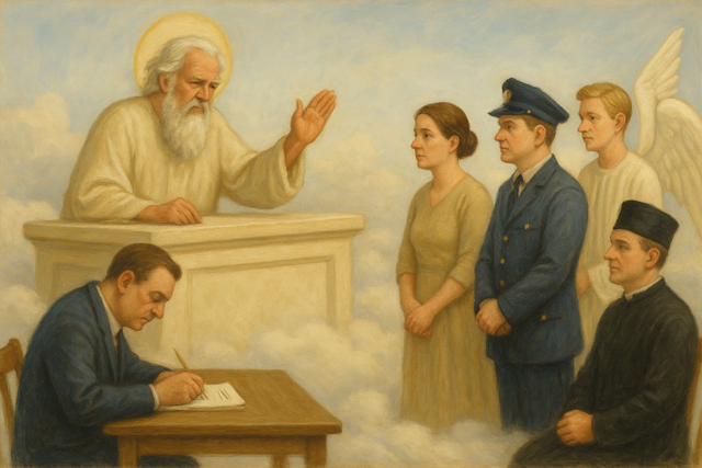 Man hatte ihn abgestellt, das Jüngste Gericht zu protokollieren, als wäre es eine gewöhnliche Verhandlung an irgendeinem Landgericht, ein trüber Vormittag Ende Oktober, an dem die Beamten gähnen und die Federhalter sich durch die Verhandlung kratzen. Nur dass diesmal das Publikum aus sämtlichen Toten aller Zeiten bestand, schweigend und blass, wie auf einer Premiere, deren Bedeutung niemand kennt, aber bei der man, der Form halber, anwesend sein muss. Da saß er nun eben an diesem Tischchen, das...