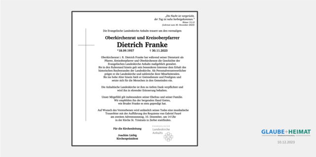 (veröffentlicht in GLAUBE+HEIMAT, Ausgabe 10.12.2023)