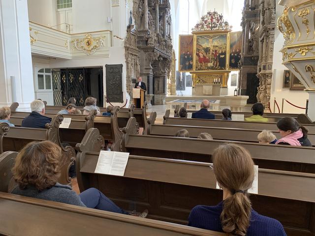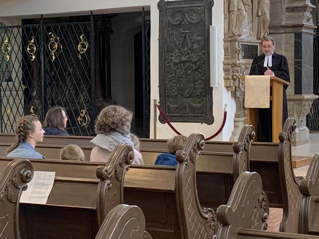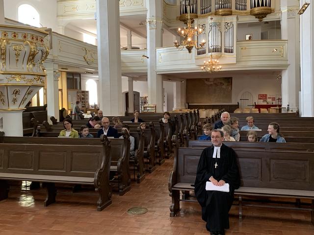 "Die Schäfchen trauen sich noch nicht aus dem Stall", mit einem Augenzwinkern begrüßte der Weimarer Superintendent Henrich Herbst die überschaubare Gemeinde beim ersten öffentlichen Gottesdienst seit Beginn der Corona-Krise. In der ersten gottesdienstlichen Feier am Hirtensonntag sind gerade mal acht Gemeindeglieder in die große Stadtkirche St. Peter und Paul gekommen. Für den dreijährigen Martin gibt es einen individuellen Solo-Kindergottesdienst. Die anfängliche Unsicherheit bei Akteuren und Gottesdienstbesuchern weicht schnell der Freude über die Gemeinschaft. Eine Besucherin meint: "Wie schön, dass ich wieder mal Menschen zwar mit Abstand, aber ohne Maske begegnen kann". Auf den gemeinsamen Gesang muss verzichtet werden. Aber diese Einschränkung nehmen die Gottesdienstbesucher hin, wie so vieles in diesen Tagen.